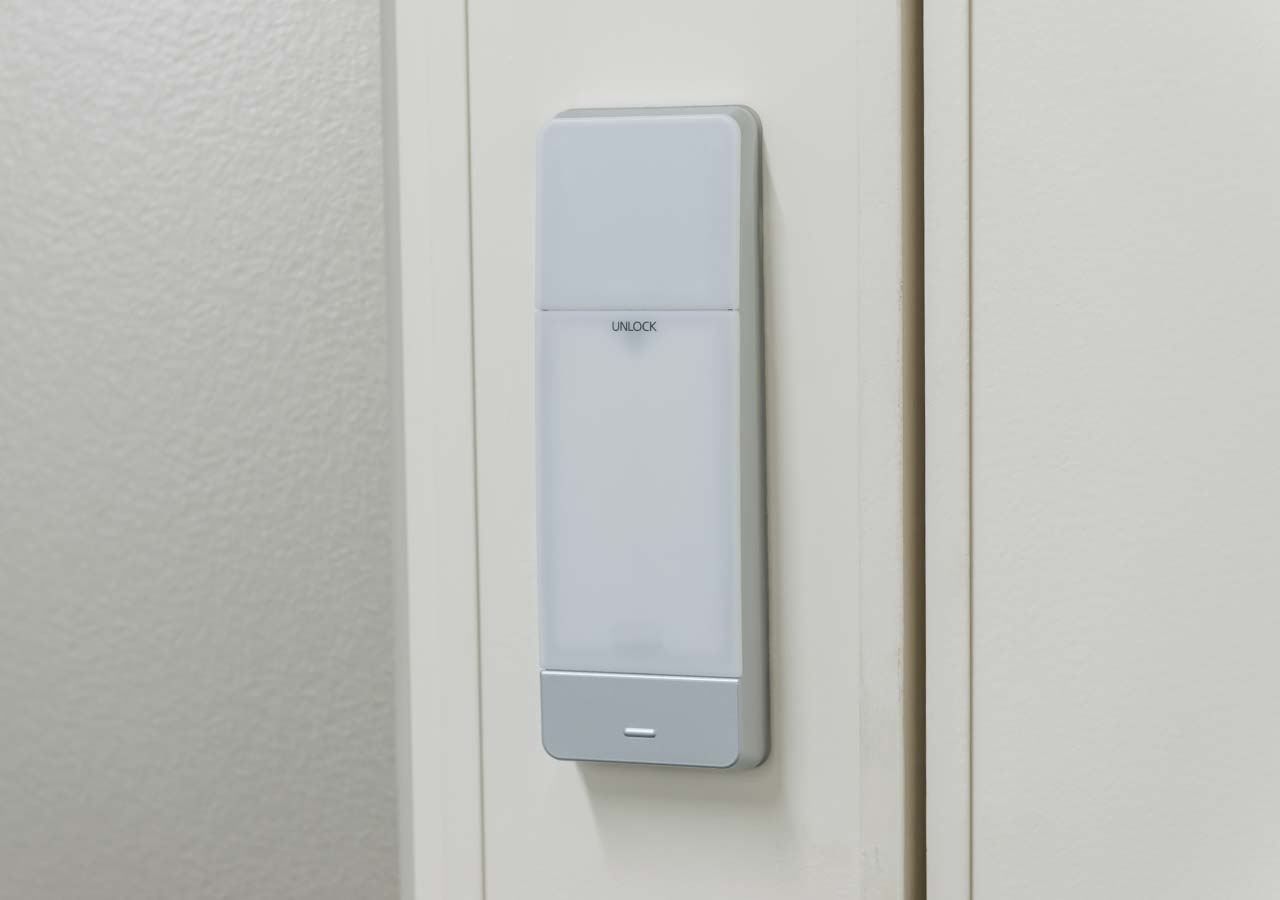 スタッフの入退室管理をシステム化することで、不正な侵入を未然に防ぎます。ICカードやテンキー、生体認証など、ご希望に応じた機器の導入も可能です。入退室の履歴は一括で管理でき、スマートフォンからの遠隔操作にも対応。初期設計から運用まで一貫してサポートいたします。