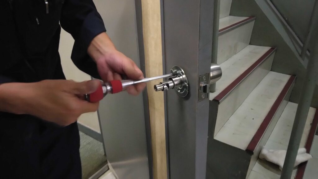 朝から夕方まで現場での作業。帰社後は、翌日に向かう現場の準備をする。毎日残業はあるが、長時間ではない。鍵交換、電気錠の取付交換、補助錠の取付工事、そして技術的なご提案。やることは、思っていた以上に幅広い。